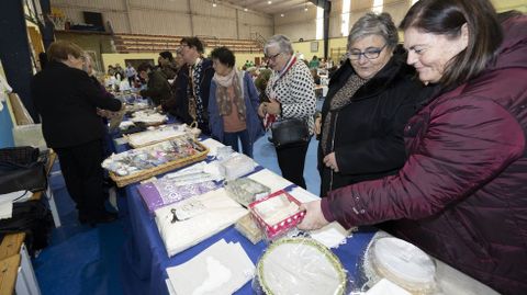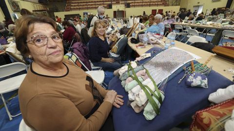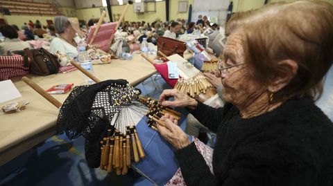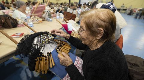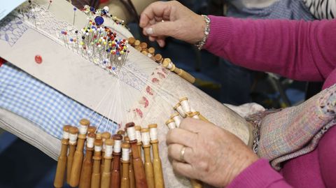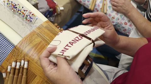 Por afición, por mantener la artesanía, pero no para vivir, desde luego. No lo ve factible. Aprendió de su abuela y bisabuela. «Antes as mulleres desta zona sostiñan a casa co encaixe, da labranza non se vivía. Hoxe é imposible», asegura. Ve falta de relevo, señala que la «destreza» y los «puntos» de la Costa da Morte no son fáciles de replicar y vaticina: «Cando nos falte a xente maior, adeus ao encaixe». Es laborioso, da faena, tiene que gustar, desde luego. Colaboradora de As Nemanquiñas y antigua integrante de la directiva, participa en aquellos encuentros que puede: O Grove, Xove, Burela, San Cibrao... Por eso no podía perderse el de su tierra.