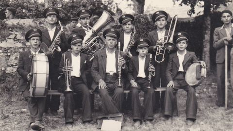 FOTO CON HISTORIA | La banda de música de Meanos estuvo activa en los años 40 y 50. Quedan dos supervivientes: Fidel Amigo es uno de ellos