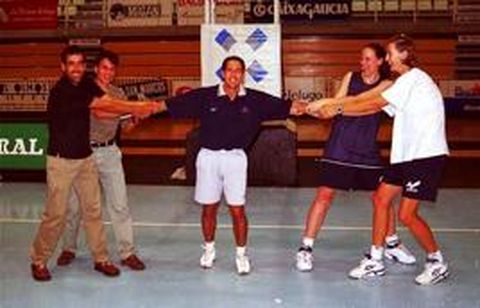 24 sep 2001 . Actualizado a las 07:00 h.Puede vérsele haciendo correr a los muchachotes del Lugo por Rábade o en las proximidades del Ángel Carro. También anda en el Pabellón Universitario poniendo a tono a las chicas de baloncesto del Yaya María. «Nos hace sudar a la gota gorda y en pretemporada hay veces que te carga un poco, pero es por nuestro bien», admite Carlitos, uno de los canteranos del equipo de fútbol. José Durán ha llegado a quedarse al frente de las operaciones en algún partido de la Liga Femenina de Baloncesto, cuando Corral ha sido descalificado. Y tras el cese de Basadre en el Lugo se quedó como jefe de forma interina. «No hay grandes diferencias entre la preparación física de ambos grupos. En el Lugo enfoco más el trabajo hacia la mejora de la resistencia de la plantilla, mientras en el Yaya María en la pretemporada me he dedicado más a poner a punto a las jugadoras durante la ausencia del entrenador por encontrarse en Túnez», resume el polivalente preparador físico. «Se porta bien con nosotras, porque siempre le hacemos caso», resume Ramírez, una de las jugadoras que trabaja a sus órdenes. «Conforme avanza la temporada, mi labor es más específica y baja la intensidad», agrega Durán, que llegó a jugar en juveniles a las órdenes de Edrosa con su hermano Santi.
