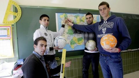 El más mayor, Iván, terminó la especialidad de Inglés; Diego, Educación Física; a Manu le quedan unas pocas asignaturas para finalizar Primaria, y el más joven, Javi, se decantó por Infantil, que ha empezado este curso. Los cuatro tenían en mente dar el salto al INEF, por el vínculo con el deporte que mueve sus vidas, pero el Magisterio, profesión últimamente blanco de todas las batallas, los enganchó.