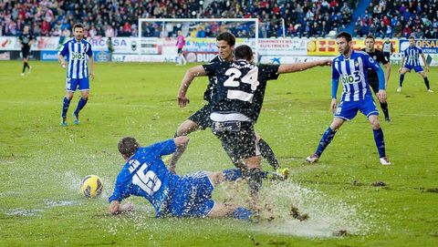 «Sobre todo por el estado del terreno de juego. Hacía difícil la circulación. Tuvimos que jugar en largo demasiado desde nuestro portero. Pero el equipo se adaptó bien. Más en la primera parte», resumió, y estimó que, esta vez, tuvieron la suerte de su lado. «Acertamos en una jugada abalón parado. Ya tuvimos otra ocasión para adelantarnos, de Pablo en la primera parte», dijo. Y resaltó el triunfo como «muy importante, porque permite afrontar la competición con más tranquilidad, para conseguir la permanencia».