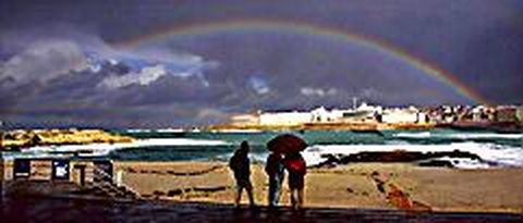 LLEVAMOS no sé cuantos meses de lluvia y nos quedan todavía algunos por delante. Pero vamos mejorando. Ayer, a las tres de la tarde, un arco iris maravilloso cruzó de lado a lado la bahía de Riazor con sus majestuosos colores. Por unos instantes, el Millennium y la Torre de Hércules estuvieron unidos por una autopista multicolor. Recordamos a Judy Garland cantando aquella gran canción, Over the rainbow, en la película el Mago de Oz. Después, la lluvia venció al sol. El arcoiris desapareció, pero nos regaló unos segundos llenos de primavera. MIENTRAS la naturaleza alegraba Riazor, un grupo de periodistas de la ciudad se reunía en el restaurante del Playa Club para compartir experiencias, recordar viejas anécdotas y celebrar la festividad del patrón de la profesión, San Francisco de Sales. Al almuerzo asistieron, entre otros queridos colegas Ezequiel Pérez Montes, Emilio Merino, Francisco Gutiérrez, Vicente Leirachá, José Antonio Martínez, López de Alba, Pepe Castro, Emilio Quesada, Diego Martínez Purriños, Eusebio Álvarez, Alberto Martí, Manuel Hernández, Pepe Vázquez, el matrimonio Padín y Lázaro Candal. Como invitados acudieron Rodríguez Corcoba, subdelegado del Gobierno, e Isabel García Vila, delegada de la consellería de Cultura. SAN FRANCISCO de Sales fue el santo al que San Juan Bosco encomendó la congregación Salesiana. Y, precisamente, la asociación de antiguos alumnos del colegio Salesiano va a celebrar durante este año un sinfín de actividades para celebrar el 75 aniversario del colectivo, que ahora preside el incombustible Fernando Esclusa Otero. LA MITAD de los alcaldes de la provincia continúan con su visita a Bruselas en donde están conociendo los entresijos de la Unión Europea gracias a la iniciativa de la Diputación que financia el viaje. Ayer hablamos con su presidente, José Luis Torres Colomer, y nos contó que, excepto el vuelo, que fue un tanto accidentado, todo va muy bien, aunque apenas tuvieron tiempo libre para conocer los encantos de la capital belga. EN LA SALA Xosé Rey Lago del Ayuntamiento de Culleredo se clausurará mañana la exposición conjunta de Carmen Quiñoa Rodríguez, Violeta Fernández Carril, y Ángela Fernández Pérez. Las tres son cofundadoras del grupo artístico Dekatró. Es una buena oportunidad para conocer sus trabajos pictóricos y, de paso, el magnífico Museo dos Muiños.