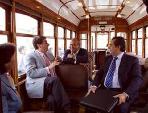 La restauración de un cuarto vehículo adquirido en Lisboa completará la flota «Es como un museo rodante», sentenció Francisco Vázquez al subir al tercer tranvía histórico que ayer debutó sobre los raíles del paseo marítimo. El vehículo, adquirido por cuatro millones de pesetas en Lisboa, ha sido minuciosamente restaurado por la Compañía de Tranvías para completar la flota de la línea turística entre la glorieta del hotel Tryp María Pita y O Parrote.