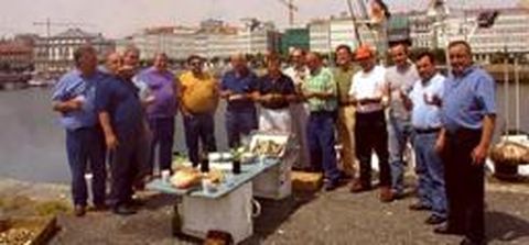 SANTA Ana fue, casi casi, la excusa. Un grupo de personas de Malpica, gentes del mar en su mayoría, se reunieron en la tarde de ayer en la dársena de La Marina con otros oriundos de la Costa da Morte residentes en la ciudad para conmemorar la festividad con una sardiñada. FRANCISCO Vázquez recibió ayer en su despacho al humorista Moncho Borrajo. Ambos mantienen una estrecha amistad desde hace muchos años, pero no por ello el regidor coruñés se libró de que el popular artista dijese que el alcalde encaja muy bien las bromas. Ahí va una: este año le llama viagra porque -dice el cómico- tiene toda la ciudad levantada. Pero Borrajo comentó más cosas, tales como que cuando se retire se despedirá en A Coruña y en Sevilla, ciudades que calificó de especiales. Además, espera estrenar pronto en el teatro Rosalía una obra escrita por él y titulada Marquitis, en la que no interviene como actor. «VOZ DE tarde», el programa de Radiovoz que conduce Manuel Suárez no despide la temporada hasta el martes. Pero ayer, coincidiendo con su realización desde el hotel Ciudad de La Coruña, que dirige Carlos Salgado, pudo palpar, o mejor gustar, la pena de los oyentes por la pausa estival. Una seguidora del espacio radiofónico, Manoli, hizo llegar al equipo la tarta que pueden ver en la imagen, acompañada de una carta de reconocimiento por los buenos ratos de acompañamiento a través de las ondas. EL MARTES nació en el hospital materno infantil Santiago Mouzo Méndez, hijo de nuestro compañero de Redacción Emiliano Mouzo Mouzo y de su esposa, Rosa Méndez Pardiñas. El bebé, que pesó 3,250 kilos, es el primero del matrimonio, que ha recibido al pequeño con una gran alegría. Muchas felicidades y enhorabuena. «LOBO de bar» es el título de la escultura que acaba de ser inaugurada en la cervecería Fontán y que es obra de Chema Cañás y Fernando Groeiro. El establecimiento está situado en la calle Fontán y no en Monte Alto. Lo aclaramos para aquellos que deseen conocer la pieza.
