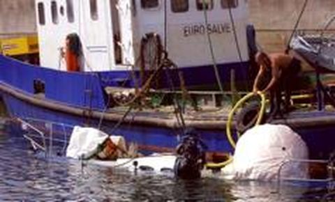 04 sep 2001 . Actualizado a las 07:00 h.El miedo y la preocupación invadió ayer por la mañana la antedársena de La Marina. Las autoridades marítimas y portuarias temían que en el interior del yate pudiese haber algún cadáver. Los buzos fueron los encargados de tranquilizar a los allí presentes. A bordo tan sólo se encontró una moneda inglesa, lo que hizo sospechar que el barco pudiese haber sido abandonado por un mercante. Después de la inspección submarina se inició el reflote del velero. Unos globos lo levantaron del fondo. Una bomba achicó la embarcación para que la grúa del buque Eurosalve IV lo izase. Los técnicos iniciaron las primeras investigaciones. Las pesquisas sirvieron para descubrir que el yate tenía dos grifos de fondo abiertos, lo que le provocó una vía de agua. «Alguien preparó todo para hundir el barco», indicaron. Se sospecha que el barco pudo haber sido desvalijado y que habían intentado hundirlo. Los más optimistas creen que el dueño lo estaba reparando, se le desamarró y quedó a la deriva.