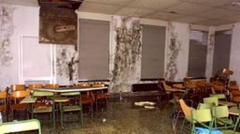 El centro, que estaba cubierto con lonas, padeció los rigores de la lluvia y no tendrá actividad hasta el lunes «Catastrófica», así define el Ayuntamiento de Culleredo la situación del colegio público de Tarrío. Las paredes están ennegrecidas, algunas aulas parecen piscinas y los ordenadores y los libros se mojaron con las goteras que «atravesaron» las tres plantas del centro debido a un tejado inexistente, ya que la cubierta estaba en proceso de sustitución. Por el momento, los 250 alumnos, que ya habían comenzado las clases con retraso el pasado día 24, ven ampliadas sus vacaciones forzosas hasta el lunes.