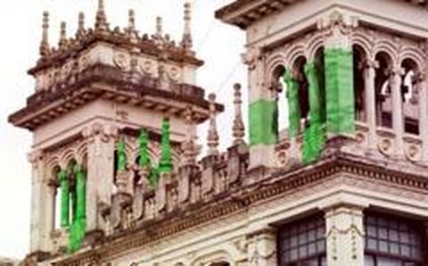El ente público admite en un informe el grave deterioro del edificio La Terraza, el histórico edificio de los jardines de Méndez Núñez, está «vendado» con mallas verdes. El remedio casero pretende evitar la caída de fragmentos de la fachada a la calle. El inquilino de la casa, RTVE, ha decidido por fin reformar el inmueble.
