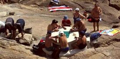 12 jun 2003 . Actualizado a las 07:00 h.No tienen el clásico tapete verde de los casinos. Estas mesas son de piedra blanca, pero valen para montar una timba bajo el sol del Orzán. Pasan cuatro nubes y los obreros se toman un respiro o un pitillo mientras pulen el tablero de estas tres mesas estilo merendero (redondas y con sus tres bancos por barba). A las rocas del Orzán les han salido una mesas. En la arena también ha crecido un bungaló o cabaña del tío Tom para que reposen los socorristas. Ya hay debate sobre los muebles que estrena la ciudad. Los asiduos han hallado usos múltiples al tablero: sirve para organizar merendiñas, echar un tute o, se teme, para los botellones. «Para el botellón y las fiestas nocturnas son perfectas, porque así los chavales tienen donde poner la botella». Es el pronóstico de Javier Fernández, un administrativo coruñés que aprovecha sus vacaciones para degustar el sol que se desploma sobre el paseo. Es crítico, pero con matices. «No es muy estético, la verdad es que desentonan un poco», espeta, aunque, por contraste con otros proyectos, no lo considera catastrófico. «Comparado con los cientos de millones que costaron otras cosas -argumenta-, pues por lo menos es algo útil, no como el pirulí o el tranvía». «A mí no me hacen daño ninguno. No me estorban». Es la sentencia de un paseante experimentado. Manuel Suárez, jubilado, otea la playa desde la glorieta de los Surfistas. «A mí no me parece mal que hayan puesto esas mesitas, supongo que son para la baraja, para que las señoras se diviertan jugando a las cartas», apunta Suárez, que confiesa su entusiasmo por «todo lo que hace el alcalde». Duda, eso sí, de la supervivencia de estos artefactos, ya que unas mesas de madera instaladas hace unos veranos acabaron convertidas en leña sobre las olas del Atlántico. En este rincón se tuestan a diario los más veteranos del arenal, a salvo de los balonazos de los pequeños maradonas y a tiro de piedra (o de pupila) de las topleseras a las que no quitan ojo los sospechosos habituales que gastan codo en la balaustrada del paseo marítimo. Por ahora, el merendero se estrena con unas devotas de la baraja que se juegan sus céntimos disfrazadas de yanquis con sus gorras de béisbol. Asoman los bocatas y el as de oros. Luego, la noche dictará su sentencia. Se verá entonces si anidan en este Orzán amueblado los rapaces que trasiegan alcohol de súper en formato calimocho.
