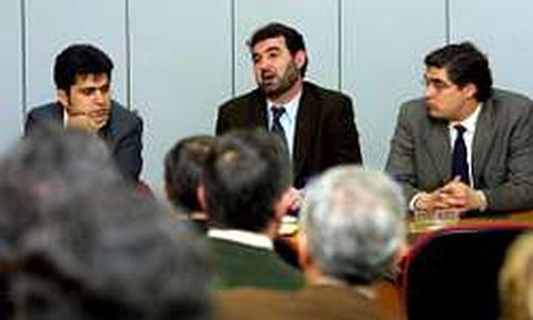 «Non entendemos a cidade da Coruña sen o seu porto. É un sector xerador de riqueza e ten que ser un dos motores dunha cidade que vemos como un dos motores económicos de Galiza», destacó ayer el portavoz nacional del BNG, Anxo Quintana (en el centro), tras una jornada de precampaña con distintos colectivos que desarrolló en A Coruña y comarca. El candidato autonómico del BNG reclamó a PP y PSOE un compromiso en materia de empleo para la comunidad.