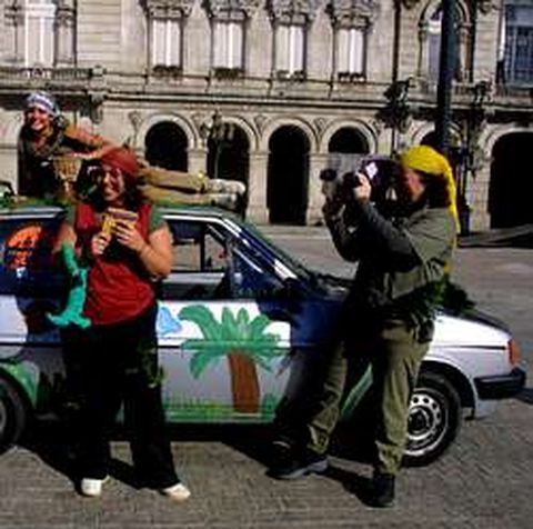21 feb 2004 . Actualizado a las 06:00 h.?omenzaron desayunando ajos crudos en la Plaza de María Pita. Los cinco grupos participantes en la novena edición del Rally Humorístico, organizado por una asociación universitaria, son reincidentes e incorregibles. La mayoría reconocía ayer que están enganchados a esta competición de carácter benéfico (la recaudación se destina a la Cocina Económica), pero basada en superar pruebas por toda la ciudad. «Yo hace años que dejé la facultad, pero me gusta participar a pesar de que algunos años ha sido muy duro, pero siempre divertidísimo», asegura una joven que junto a cuatro amigos disfrazó un vehículo de arbusto para que hiciese juego con sus atuendos. «Vamos de La isla de los no famosos , hemos estado tres meses en Cecebre. Mira los cocodrilos más tremendos a los que nos hemos tenido que enfrentar», añadía una compañera del grupo, señalando un peluche infantil. «Sin faltar, que yo voy de mariquito», exclamaba el único hombre que acompañaba al grupo e iba vestido de mariquita. «Un año una de las pruebas fue comer un gusano vivo !Hasta las chicas lo hicieron!», recordaba otro participante. Al final, su buen humor tuvo premio. El ganador fue La isla de los no famosos .