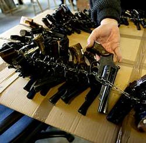 22 mar 2004 . Actualizado a las 06:00 h.?ás de seiscientas armas de saldo, rifles a partir de ocho euros y todo tipo de pistolas por poco más de seis. Eso sí, nadie garantiza que funcionen, ni siquiera los anfitriones del acto: los responsables de la unidad de intervención de armas de la Guardia Civil. Una vez más el cuerpo trata de dar salida a más de 600 armas que van acumulando a lo largo del año en el cuartel de Lonzas. «La mayoría procede de depósitos, es decir, de gente que no desea renovar el permiso de armas o que ha heredado el rifle de algún familiar, pero no lo quiere», explica uno de los agentes que custodia el arsenal en los bajos del cuartel. «Ninguna ha sido usada para cometer delitos graves y se trata de que así sigan, por eso sólo pueden participar en la subasta las personas que acrediten que tienen el permiso correspondiente para el arma que desean adquirir», matiza el mismo guardia. Cazadores y amenazados Los interesados en comprar alguna de las piezas pueden examinarlas todas las mañanas de nueve a dos desde ayer hasta el sábado, cuando se consumará la venta. La mayoría de los que se acercan son cazadores o aficionados al tiro olímpico y revisan concienzudamente todas las armas largas, otros se interesan por las pistolas. «Las personas que sufren alguna amenaza también pueden solicitar un permiso para tener consigo un revólver como autodefensa», aclaran los agentes. Piezas curiosas Entre las piezas hay pistolas tan coquetas que podrían llevarse a la ópera, minúsculas y con una elegante empuñadora de nácar. Sin embargo, una de las que más gusta es mucho menos estética. Se trata de una pistola marca Glock, una pieza realizada en polímero, un material resistente y ligero. «Dispara bajo el agua y en las pruebas que se realizaron ni una excavadora fue capaz de deformarla», aclara un joven decido a pujar por ella. «Cuando salió se hizo famosa porque corrió el rumor de que no la detectan los controles de los aeropuertos, pero la verdad es que no sé si eso es cierto», confiesa.