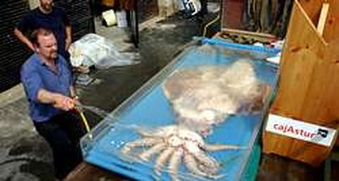 10 jun 2004 . Actualizado a las 07:00 h.La mítica leyenda noruega del kraken, el calamar gigante que hundía barcos y que acabó con la vida de un marinero del Nautilus en 20.000 leguas de viaje submarino, llegó el lunes por carretera a A Coruña. «Este calamar gigante es un Architeutis, y lo encontramos varado en la costa asturiana, en Yanes, hace casi tres años. Su longitud original con los tentáculos era de 11,60 metros, aunque se los hemos seccionado del cuerpo, que mide tres metros. Había muerto por los trabajos de dos buques oceanográficos que usan ondas de hasta 200 atmósferas de presión para encontrar petróleo y gas natural», sitúa Luis Laría, el biólogo encargado del traslado de los animales desde el Aula del Mar de Luarca hasta el Aquarium Finisterrae, donde el 18 de junio comienza la exposición Con pies y cabeza. Cefalópodos del mundo. Junto al architeutis, Laría se trajo de Luarca un calamar menos alargado pero también enorme, el Taningia Danae: el animal ostenta el récord de ser el más grande del mundo de su clase. Pesa 124 kilos, y fue capturado accidentalmente por unos arrastreros. «Afortunadamente para ellos, no son comestibles: su cuerpo tiene una gran cantidad de amoníaco», matiza Laría. Cuando llega el camión tras diez horas de viaje, los técnicos del Acuario los suben a pulso hasta la sala Humboldt, donde se instalará la exposición durante dos años. La muestra incluirá especies de cefalópodos desconocidos para el gran público como los pulpos cabezones, un pulpo gigante de California, varios nautilos del tipo Emperador procedentes de Australia... «De todos modos, la esperanza de vida de la mayoría de estos cefalópodos no suele ser superior a dos años y algunos llegarán hasta aquí adultos, por lo que el contenido biológico de la muestra cambiará varias veces hasta el final de la exposición», avanzó Paco Franco, el director del Aquarium Finisterrae, que coordinó todo el evento. «También hay que tener en cuenta que son animales muy territoriales y no es posible mostrar a dos especies en el mismo acuario, por lo que al principio algunos animales quedarán fuera de la muestra y se incorporarán con el tiempo», resaltó.