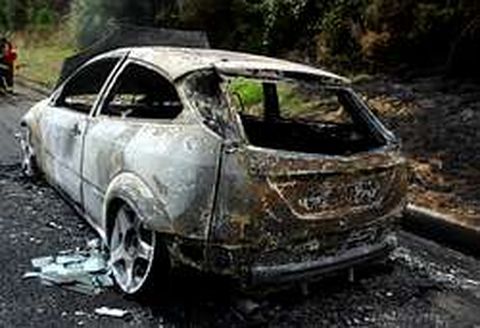 04 oct 2004 . Actualizado a las 07:00 h.Un cortocircuito se baraja como el origen de un incendio que se declaró en un Ford Focus que circulaba, sobre la una de la tarde de ayer, por la autopista AP-9 en dirección Santiago y que calcinó por completo el turismo. Los ocupantes del vehículo no sufrieron daños, pero las llamas afectaron al arcén de la autopista y quemaron parte de la ladera cercana, lo que obligó a alertar a distintas cuadrillas para sofocar las llamas. Aspecto desolador El turismo, que quedó aparcado en el arcén, a la altura del kilómetro 20, en el término municipal de Abegondo, presentaba un aspecto desolador. La tapicería, los cristales, el motor e incluso las llantas desaparecieron pasto de las llamas. Prácticamente no quedó rastro de la matrícula del automóvil, pese a que a la zona se trasladaron, alertados por el servicio de emergencias 112, miembros de Protección Civil de Abegondo para colaborar en las labores de extinción. En la ladera ardió alrededor de 0,35 hectáreas de arbolado. Miembros de la Guardia Civil cortaron, en todo el tramo afectado por las llamas, el carril derecho, como medida de seguridad.