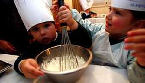 25 feb 2005 . Actualizado a las 06:00 h.?ico se peleó con su enorme gorro de cocinero. Se le calaba hasta los ojos, no dejaba de caerse y amenazaba con descolgarle las orejas. «Malo, malo, malo», lo reprendió. Pero ni el gorro lo distrajo de su interés preferente por ser el primero para todo: para extender el almíbar, para coger la manga pastelera, para batir la nata o para espolvorear ¡¡¡el chocolate!!! Demasiada tentación para una vez que no está prohibido meter las manos en la masa. Sobre todo cuando la edad todavía se dice enseñando los dedos de una mano. Porque eso hicieron ayer un grupo de niños de 4 a 12 años: sin miedo a mancharse, meter las manos en el bizcocho, el almíbar y demás delicias habitualmente sólo manipulables por los mayores. Hijos de empleados de Fadesa, asistieron a una peculiar clase de nutrición e iniciación a la repostería en el Hotel Barceló. El resultado final fueron cuatro tartas y muchas experiencias gustativas. A iniciativa de la Fundación María José Jove, Aitor Maiora (de nombre cocinero para los alumnos), fue el profe. Del Centro Superior de Hostelería de Galicia, convirtió en todo un juego una lección sobre los sabores y la alimentación. Y rompió tópicos. «No me gusta, pero me lo como todo». Noelia, dos trenzas y cuatro años, no le hizo ascos ni al puro chocolate puro. Antes de extender la primera capa para la tarta, ya estaba preguntando: «¿Pero cuándo la vamos a comer». Más distraída andaba Sofía, la benjamina, que pronto se cansó de guardar cola para extender eso que el cocinero llamó jarabe. Era agua y azúcar, dos colores raros en el universo para pintar, con brocha y todo, una tarta. «Este es el verdadero chocolate, es amargo», explicaba Aitor antes de obtener un unísono «corazón» a la pregunta de cuál era el preferido para el paladar. Por supuesto, ganaron los bombones de toda la vida. Poco les importó a los pequeños que Aitor insistiese: «Están más ricos, porque son dulces, pero no es chocolate». Hubo todavía más sorpresas para todos. Incluido Óscar, un pequeño pirata -con bigotes de cocinero- que hizo de la brocha primero una trompeta y después una espada y que no dudó en decir, alto y claro, que nada sabe mejor que la costilla. Fue él, como los demás, de los reacios a probar lo ácido, una crema de chocolate blanco con yogur, mermelada cruda de limón y jarabe de frutos rojos. Una curiosa mezcla mágica: consigue poner a todos «cara de chinos», decían los niños. Pero lo mejor, llegó después. Medio saciados ya por las chorreras de nata que «parecen serpientes», se las prometían con las piruletas. Gran chasco general: eran de chocolate, naranja... y sal. Las patatas fritas no aparecieron, pero todos aprendieron -además de a distinguir lo dulce de lo ácido, lo salado y lo amargo-, que no es oro todo lo que reluce. Ni piruleta todo lo que lleva palo.