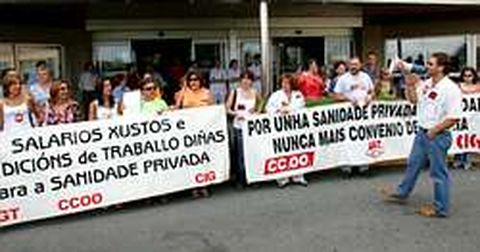 27 jun 2005 . Actualizado a las 07:00 h.?esponsables de los sindicatos UGT, CIG y CC.OO. calcularon que la huelga que se desarrolló ayer en los centros sanitarios de A Coruña tuvo un seguimiento del 90%. Aseguraron que la jornada fue un «éxito rotundo», aunque denunciaron que los servicios mínimos impuestos por la Consellería de Sanidade fueron «abusivos» y que, al igual que en la anterior huelga, serán denunciados porque «vulneran a lexislación vixente». El delegado sindical de CIG-Saúde, Xoan Sande, aseguró que los servicios mínimos fueron incrementados en la mayor parte de los centros «coma se fora un día normal, xa que non desprogramaron consultas» y recordó que la ley estipula las presencias en un día de huelga como las de un festivo. El personal sanitario se concentró en A Coruña delante del USP Santa Teresa, del Sanatorio Modelo, el Hospital San Rafael, el Centro Oncolóxico y Euroespes (Bergondo) y, por último, junto a la sede de la Confederación de Empresarios. Los representantes sindicales explicaron ayer que la negociación del convenio está parada por la negativa de la patronal a sentarse a buscar un acuerdo, ya que en la pasada reunión del día 20 propuso una subida salarial del 3,4% para los años 2004-2005, mientras que la reivindicación sindical es del 4%. Recordaron que otra de sus reivindicaciones es que se sume un día más de libre disposición al año, ya que, según dicen, los empleados de la sanidad privada trabajan entre 203 y 340 horas más que en la pública, con salarios tan bajos que el personal trabaja en la pública y la privada, «bordeando» la ley de incompatibilidades. Xoan Sande afirmó que la intención de los sindicatos fue siempre acortar el conflicto y esperan a que la patronal dé «un paso» para entrar también en la negociación del convenio colectivo del 2005, «porque seguimos co do ano 2003», explicó.
