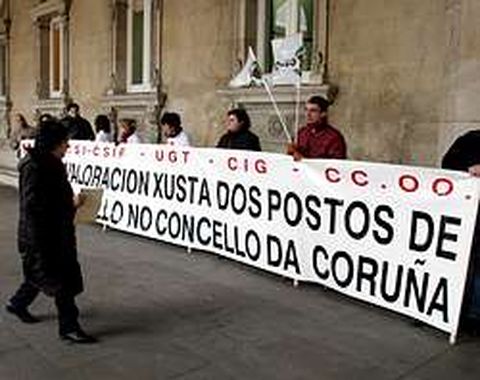 15 feb 2006 . Actualizado a las 06:00 h.La mesa de personal del Ayuntamiento se reunió ayer para intentar desbloquear el conflicto salarial que afecta a los funcionarios municipales y que puso en jaque a la ciudad. La concejala de Personal, Nieves Vázquez, respondió de forma positiva a la principal exigencia de los sindicatos, que pasa por encargar una auditoría externa que efectúe la relación de puestos de trabajo del Ayuntamiento. Además, como «gesto de buena voluntad», aceptó el pago de unos complementos salariales para los grupos menos favorecidos que oscilan entre los 50 y los 161 euros, que se abonarán con independencia del resultado final del análisis de la plantilla. Con esos postulados, Nieves Vázquez invitó a sus interlocutores a «apostar decididamente por el diálogo» para solventar la actual situación de confrontación. Para ello, pidió el tiempo necesario -en torno a seis meses- para efectuar la valoración de la plantilla. Esa postura fue rechazada tajantemente por Manuel Aceña, portavoz de la Junta de Personal, quien anunció la intención de mantener el calendario de movilizaciones acordado en asamblea. Aceña admitió que la propuesta municipal «contiene algunos avances, pero no recoge ninguna de nuestras alegaciones y no estamos dispuestos a que nos sigan pidiendo tiempo para hacer algo que llevamos años pidiendo y que es una valoración objetiva de todos los puestos de trabajo». Esa postura fue rebatida por UGT. Ayer, el secretario general de la sección sindical del Ayuntamiento, José Varela Laya, trasladó el conflicto al recién constituido comité provincial del sindicato UGT, donde recibió el correspondiente apoyo para desvincularse de la posición mantenida por Aceña. «Nos dan lo que pedimos, que es la valoración y una mejora salarial a cuenta. Tanto la CIG como nosotros sabemos que una relación de puestos de trabajo no se hace de hoy para mañana y nosotros estamos dispuestos a dar al Ayuntamiento el tiempo que nos han pedido», dijo un portavoz. Por eso, UGT iniciará una campaña explicativa por los centros de trabajo para dar cuenta de esta postura, al tiempo que dejará de participar en las manifestaciones. «Ello no significa que renunciemos a nada, porque vamos a seguir luchando por eliminar algunos puntos de conflicto en áreas como los servicios especiales, pero así queda clara nuestra voluntad de diálogo», explicó la misma fuente. Por su parte, Comisiones Obreras estudiará la oferta municipal en los próximos días, pero se mantendrá en las movilizaciones «hasta que no las desconvoque una nueva asamblea general de trabajadores».