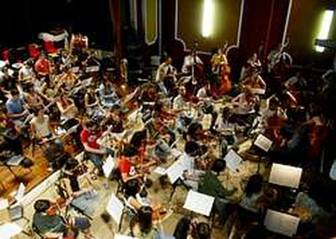 21 sep 2006 . Actualizado a las 07:00 h.El patio del colegio de los Salesianos de A Coruña fue calificado por varios comentaristas deportivos como «la catedral del fútbol-sala coruñés». Estos días, a ese patio no llegan, al menos durante algunas horas de la tarde, las voces de los futboleros, sino la música de una de las sinfonías de Schubert. Y es que, en el teatro de los Salesianos están ensayando los músicos de Orquesta Joven de la Sinfónica de Galicia. Desde fuera, la melodía atrae, y, al entrar, la primera sorpresa es que, dirigiendo a decenas de jóvenes -la mayoría no llegan a los veinte años- está nada menos que Alberto Zedda. Alejandro Sanz y Rubén Gimeno, los dos directores de la Orquesta Joven, destacan que ésta es la segunda vez que Zedda, que ha superado ya los 75 años, dirige a los muchachos, «y es un encuentro que funciona de manera increíble, porque él recibe la enorme ilusión de los chavales que están empezando, y los jóvenes disfrutan con una persona como Zedda que ha dirigido en todo el mundo y tiene una enorme experiencia». Las Orquesta Joven de la Sinfónica de Galicia está formada por músicos de 13 a 27 años, «y la media es de 17 o 18 años», explica Alejandro Sanz; también indica que a lo largo del año hacen cuatro encuentros, de unos diez días cada uno, en los que preparan un concierto del que luego ofrecen dos actuaciones. En esta ocasión, los dos recitales serán hoy, viernes, en el Auditorio de Vilalba, y mañana, sábado, a las 20.30 horas en el Palacio de la Ópera de A Coruña. En el programa figuran, entre otras obras, la Sinfonía Do Mayor, de Schubert. El método de funcionamiento de esta joven formación musical, a base de encuentros periódicos, se debe a que casi todos los intérpretes que la integran están estudiando, y, por lo tanto, tienen que asistir a las clases. Otro aspecto que señala Alejandro Sanz es que, de los aproximadamente 80 jóvenes músicos que integran la formación, unos 70 proceden de distintos lugares de la geografía gallega y el resto de otras autonomías. Estos muchachos reciben de la Orquesta Sinfónica de Galicia la formación y el apoyo que precisan en cuanto a infraestructura técnica y artística. A cambio, quizá alguno de ellos acabe formando parte un día de la orquesta «madre».