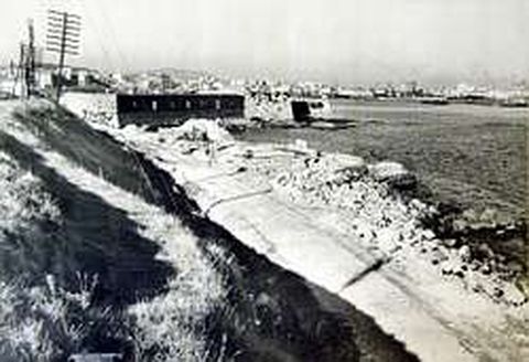 La construcción de los muelles en los que amarrarían los petroleros y los pesqueros hizo inviable la conservación del castillo de San Diego. La fortaleza presentaba este aspecto hace algo más de medio siglo, antes de proceder a su demolición para ampliar las instalaciones portuarias de la ciudad.