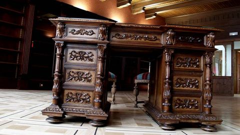 Esa mesa auxiliar es de lo poco que queda del conjunto de muebles que en su día pertenecieron al presidente del Gobierno republicano y que fueron cedidos al Ayuntamiento. Y es que, según informó ayer Gallego, hay quince piezas que se borrarán del inventario porque se cree que han sido destruidas, entre ellas el resto de muebles del despacho de Casares, dos esculturas, el Mural del Maratón y un mapa arbóreo de Méndez Núñez, aunque no especificó las causas por las que se habrían destruido estas obras.