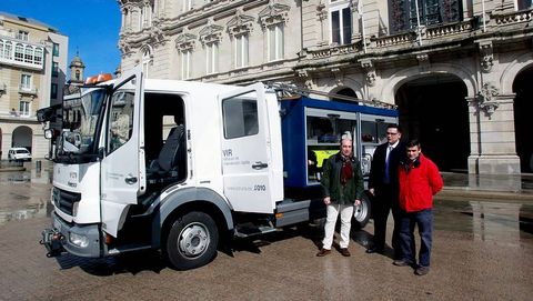 Dos ediles, asesores, bomberos y representantes de Cespa presentan en María Pita el cambio de concejalía del vehículo