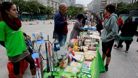 Con motivo del Día Mundial del Comercio Justo, la plaza de Pontevedra acogió ayer la Feria de Economía Social