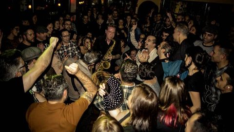 ¿Qué está pasando aquí? «Pues parece que los hosteleros están apostado por la música, lo cual es bueno si todo se mantiene en el tiempo», sostiene Tomi Legido, programador de la veterana Mardi Gras, que esta noche acoge el debut de los coruñeses Sensacional (22.30 horas). «Hay un público selectivo que está ahí. Lo otro me temo que es una moda pasajera que se irá con el tiempo», opina Jose Manuel Abelleira, socio de El Pato Negro, la sala que funciona desde hace un año en la calle Industrial. Hoy suben a su escenario The Honky-Tonkin Boozers's (22.30 horas).