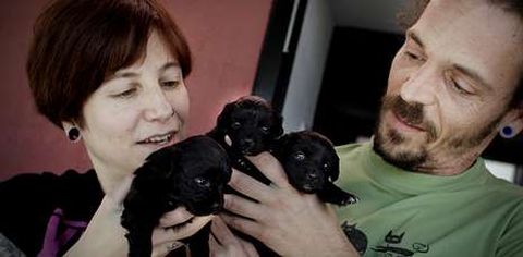 Ese es el caso de tres cachorros color azabache, de apenas un mes de vida, que fueron rescatados hace una semana por Susana y Jorge, una pareja de Culleredo. «Esa noche invitamos a cenar a mis compañeros de trabajo», explica Susana. Al marcharse, escucharon gemidos que procedían del contenedor y, pensando que podrían tratarse de gatos, lo abrieron. Dentro había una bolsa cerrada con una camada de perros. Uno, ya había fallecido y sus tres hermanas estaban «muy sucias y sedientas». Asustados por el estado de los cachorros, se apresuraron a llevarlos a casa. «Una nos dio un susto de muerte -dice entre risas Susana-, porque después de beber empezó a convulsionar, y como no sabíamos qué hacer pues improvisamos un boca a boca».