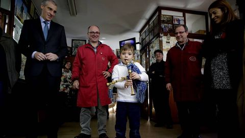 Francisco Conde conoció de la nostalgia de los Seivane por sus raíces de Ribeira de Piquín, donde un busto homenajea al patriarca de la saga, Xosé Manuel Seivane Rivas, de cuyo fallecimiento pronto se cumplirán tres años. El conselleiro recorrió las dependencias del taller, donde descubrió un buxo de más de tres siglos, conoció los numerosos tipos de gaitas que allí se construyen, e incluso descubrió que este no es un instrumento para nacer a contrarreloj. «Poderiamos empezar a elaborar unha gaita pola mañá e facela sonar xa pola noite, pero as pezas teñen que asentar, as cousas teñen o seu tempo», le explicó Álvaro Seivane. Quien sí parece ir con prisas es su pequeño nieto Brais. Sin atisbo de timidez, se arrancó ante el conselleiro con la interpretación de una pieza para demostrar que las gaitas (y los gaiteiros) Seivane son las mejores del mundo.