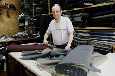 Trabaja sobre una mesa robusta rematada por una losa de mármol. Es el altar del templo de Tano, una herencia de su padre, quien abrió esta sastrería cerca del santuario de Os Remedios en 1953. No mantiene el mármol por capricho. «Así a tesoira esvara, non patina». Aquí todo tiene una explicación. Hasta la ropa que viste el propio Tano, un suéter con cuello de pico. «Como traballo coa cabeza cara abaixo?».