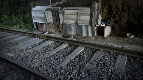 Los conductores de los miles de vehículos que cada día pasan por el final de la avenida de Arteixo desconocen que bajo el puente de ese vial con el ferrocarril vive gente. Al menos durante algunas temporadas. Sobre un lateral de la vía muerta, con el eco continuo de los coches, hay una chabola, con caseta para el perro incluida. Es difícil saber por dónde acceden los moradores a esta vivienda viendo la vertical de los taludes laterales. Unos decenas más adelante, ya entrando en el polígono de la Grela, sí es visible el lugar por donde algunos espectadores se cuelan, a través de la valla de alambre rota, para entrar en el campo de fútbol.