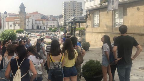 «Es la primera ruta que hacemos y está muy bien, pero esperábamos más fresco y hace mucho calor», comenta la andaluza Mónica de la Fuente, que se encuentra junto a su familia de vacaciones. «Visitamos también Santiago y A Coruña, es nuestra primera vez aquí y nos está encantando todo», dice mientras camina dentro del tour que salió a las 11 de la mañana de la plaza García Naveira. «Antes se llamaba plaza del campo o de la feria porque está situada en frente de la Porta da Vila, por donde se entraba, pero se renombró en 1983. Todas las ciudades medievales contaban con un espacio grande para las ferias porque en aquella época incluían ganado», explica la responsable de la visita que alude al parque de O Pasatempo, a pesar de que no está incluido en el paseo. «Es un espacio lúdico, pero sobre todo un lugar de transmisión de cultura e ideas», comenta la guía.