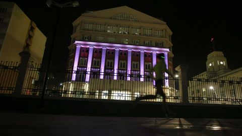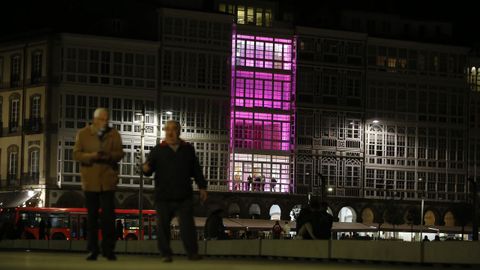 De noche, hasta 24 edificios y monumentos se iluminaron del mismo rosa. La torre de Hércules, también femenina y singular, la primera. Y con ella la fuente de Cuatro Caminos, la fachada de la Diputación, la de Monelos sede de la Xunta, la nueva Audiencia en la plaza de Tabacos, el Palacio de Justicia, la Jefatura Superior de Policía de Galicia, la Fundación Barrié, el Colegio Provincial de Médicos en su sede la Marina, el de farmacéuticos, El Corte Inglés y, por supuesto, los hospitales: el Chuac, el Oncológico, el HM Modelo, el San Rafael y el Quirón. La Universidade tiñó también algunas de sus fachadas: la del edificio Xoana Capdeville, los departamentos de Arquitectura, el Citeec, la Casa del Francés, su escuela infantil, el Pabellón de Estudiantes y el INEF de Bastiagueiro. Muy cerca, el castillo de Santa Cruz tampoco falló a una cita de color solidaria y sensible con un mal que, cuenten alrededor, le toca a una de cada ocho mujeres.