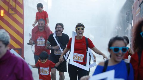 Fueron 2.000 metros de recorrido que llenaron de colorido el paseo marítimo de Riazor y certificaron que, muchas veces, lo de menos es llegar a la meta. Antes del pitido inicial, Leonardo Mouzo, de Camelle, se miraba a sí mismo ataviado de Eduardo Manostijeras. «Mi hijo tiene diversidad funcional, y venimos aquí a estar con él», explicaba sonriendo. Por las cercanías, grupos de participantes disfrazados de Capitán América o Superman, porque la cosa iba de héroes y de dejar la kriptonita a un lado.