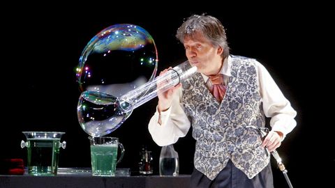 Bajo el título de Pep Bou Experiènces, el veterano mimo catalán, célebre por sus trabajos con pompas de jabón y que ha actuado en escenarios de medio mundo, recoge algunos de sus más conocidos números, en los que la poesía y la alquimia se dan la mano. Esto es lo que podrá verse esta tarde en el Teatro Colón, dentro del ciclo de Navidad, en una sesión especial diseñada para un público infantil -comienza el espectáculo a las cinco de la tarde-, aunque la propuesta escénica de Bou es capaz de engatusar y maravillar por igual a niños y mayores, que quedan hipnotizados por la danza aérea de las delicadas formas que crea con agua y jabón.