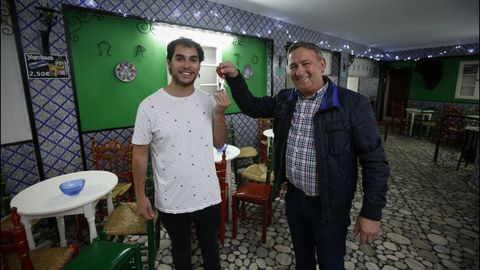 05 may 2019 . Actualizado a las 05:00 h.«Estoy encantado. Este chico es un fenómeno y seguro que va a llenar la Ciudad Vieja de gente», comenta Arturo Fernández, legendario propietario del bar El Patio. Sí, me refiero a ese local con marcada decoración andaluza donde varias generaciones de coruñeses consumieron toneladas de pipas y metros cúbicos de copas. A principios de año les contaba que el propietario había decidido jubilarse, ya que llevaba detrás del mostrador desde 1981. Incluso acudí a la animada fiesta de despedida, donde coincidimos padres y universitarios. Recuerdo que en un lugar preferente del bar Arturo había colocado uno de los libros de Iago de la Campa, un joven escritor coruñés asiduo del negocio que hasta plasmó en una portada El patio. Pues ahora Iago decidió tomar el relevo y mantener vivo el espíritu del bar. «Llevo años viniendo. Lo voy a mantener tal cual, como lo tenía Arturo. Abrimos jueves, viernes y sábado por la noche y organizaremos actuaciones en directo de 9 a 11», explica Iago, que compaginará su faceta de escritor de éxito con la de hostelero. Sí, porque a sus 26 años ya tiene en el mercado varios libros y vendió miles y miles de ejemplares. «Estaré cuando pueda porque paso mucho tiempo en Madrid, pero me van a echar una mano mis padres y mi hermano», comenta. La familia regentó hace años el bar El Techito. En las últimas horas Arturo cedió el testigo a Iago, su cliente, ahora inquilino. «Hubo bastante gente que se interesó, hasta unos que querían apostar por el flamenco aprovechando la decoración, pero Iago estaba el primero de la lista», reconoce. Vuelven las pipas, las copas y los recuerdos a la calle Zapatería. Ahí tienen el momento en el que Arturo entrega las llaves a Iago.