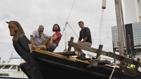 El barco, que intenta demostrar que este pueblo llegó a América antes que Colón, entra a puerto con el mástil roto