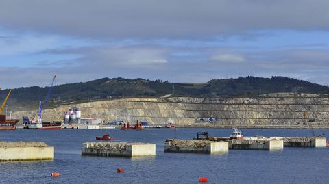 En Langosteira ya se pueden ver los grandes bloques de hormigón -los más grandes de 750 metros cuadrados de superficie y con una altura equivalente a un edificio de diez plantas- que conforman la base de la nueva estructura.