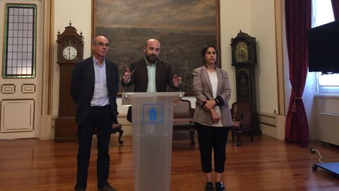 02 oct 2019 . Actualizado a las 13:38 h.El portavoz socialista José Manuel Lage y los nacionalistas Avia Veira y Francisco Jorquera presentaron nuevos acuerdos alcanzados por los dos partidos.