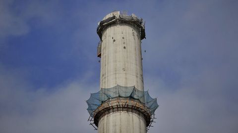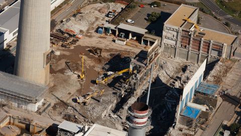 Lo hacía tras haber demolido, durante el verano del 2016, la primera chimenea de hormigón, mucho menor, de 70 metros. Los trabajos para rebajar la denominada como chimenea II fueron espectaculares, con plataformas extensibles rodeando el fuste, con un trabajo manual con martillos y cizallas de la parte más alta, para después realizar cortes de rodajas de la estructura, con hilo diamantado, y una demolición mecánica en la parte más baja. Ayer se dieron por concluidos oficialmente.