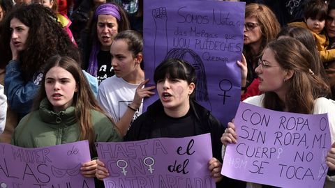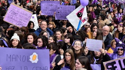 La marcha de ayer no entendió de edades. Asistieron personas mayores tan reivindicativas como cualquier joven. «Soy una jubilada y no quiero que se rían de nosotras», dijo Isabel Díaz. También trabajadoras: «Hago el mismo trabajo que mi compañero, que aquí me acompaña, y cobro casi 100 euros menos al mes», dijo Lourdes Sánchez. «No quiero que los compañeros de mi clase me machaquen todos los días por ser guapa o fea, delgada o gorda», reclamó encendida Lucía.