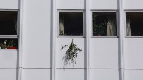 La petición del arzobispo encontró respuesta ayer en las fachadas de A Coruña, donde aparecieron colgando ramos confeccionados por las familias, algunos incluso de olivo, en conmemoración de la entrada triunfal de Jesucristo en Jerusalén, aclamado por la multitud entonando el Hossana con palmas y ramas de olivo, según la tradición.
