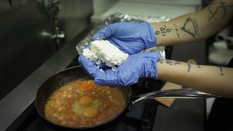 La gastronomía de Grecia es esencialmente mediterránea, con influencias orientales, en la que el aceite, el ajo, el orégano y las verduras juegan un papel fundamental. «Quería que la gente supiese que nuestra cocina es más que la musaka, que la cocina del norte es diferente a la de las islas del Peloponeso y que tenemos unas posibilidades culinarias increíbles», reflexiona. La carta se compone por platos de la cocina tradicional, que prepara con todo su cariño siguiendo la recetas que le enseñó su madre. Siempre recurre al producto fresco -no trabaja con precocinados ni colorantes o conservantes- y consigue conjugar a la perfección todos los ingredientes, potenciando sus sabores con el toque exacto de especias. «La gente piensa que nuestra cocina es especiada o picante y no lo es. Hay que darle el punto justo para hacer que los productos sepan a lo que son», reconoce.