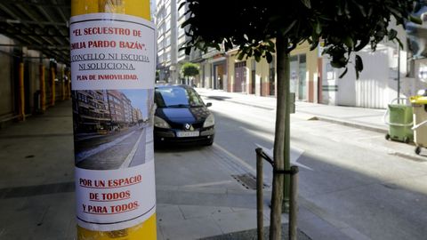 01 dic 2020 . Actualizado a las 09:41 h.«El secuestro de Emilia Pardo Bazán», denuncian los carteles anónimos que han aparecido en la calle del mismo nombre. No denuncian el rapto de la escritora, sino el de la propia calle, que a juicio del autor de los carteles se encuentra en esa situación a causa de la decisión del Ayuntamiento de peatonalizar la vía. «El Concello ni escucha ni soluciona. Plan de inmovilidad. Por un espacio de todos y para todos», dicen los carteles.