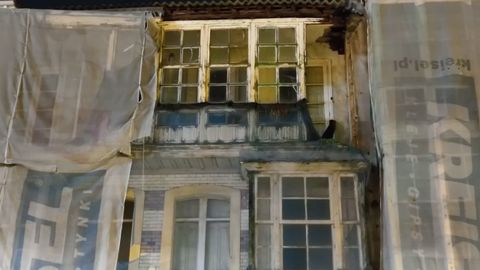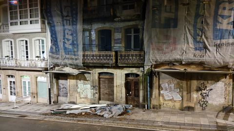 Se desprende la protección y un trozo de la fachada de un edificio de la calle Santa Lucía, en A Coruña