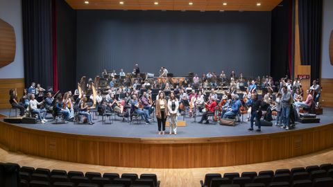 Natividade González y Avia Veira visitaron a la orquesta en un encuentro enmarcado en el convenio