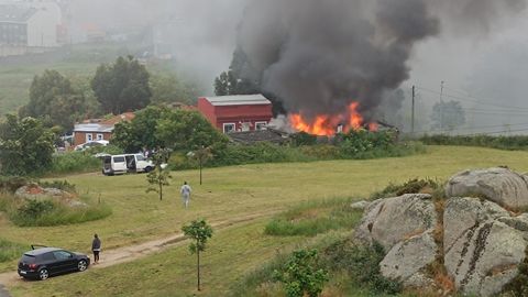 Arde por completo un galpón que almacenaba material de tapicería en Los Rosales, en A Coruña