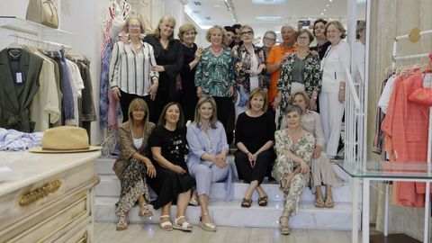 Con motivo de la jubilación de Katy (sentada en el escalón superior con un conjunto oscuro), la primera empleada de la tienda Pilar y Carmen, la empresa reunió a las antiguas trabajadoras