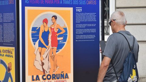 «Me acordaré toda la vida de cuando iba con mi padre de pequeña por los Jardínes de Méndez Núñez y pasábamos por las tómbolas y por los tiovivos y de que no me dejaban subir porque era muy pequeña», admite la coruñesa Teresa Otero después de ojear uno de los carteles de 1943. Ella nunca se había fijado mucho en ellos, pero ahora los diseccionaba con curiosidad. «Me sorprende mucho este. Yo viví personalmente los tiempos de Franco y me llama la atención que se pudiera hacer un cartel así. Qué curioso», comenta ante uno de ellos, en el que se representa a una mujer en bañador zambulléndose en las aguas del puerto con lo que parecía ser el castillo de San Antón de fondo.