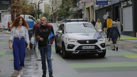 Algo ha ido a mejor en la zona de Cuatro Caminos desde que el Ayuntamiento implantó la aplicación Coruña Segura. Se trata de un botón del pánico que los comerciantes tienen a mano y están en contacto permanente con el 092. Al pulsarlo, una patrulla aparecerá de inmediato. «Desde que lo tenemos han descendido los atracos durante el día. Ahora lo que hacen es delinquir por las noches, rompiendo cristaleras o verjas para entrar en los negocios», cuenta Avelino García, propietario de una tienda de moda.