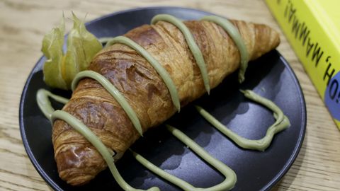 «Tenemos café italiano y también bollería italiana», cuenta Luca, que relata, entre las novedades unos cruasanes rellenos de Nutella con crema de pistacho siciliano y otros de crema pastelera, «que son muy típicos del sur de Italia». También está presente Nápoles en la carta con unos donuts napolitanos que se llaman «graffa». «Los solía ofrecer en la pizzería y funcionaban muy bien. Son más blanditos que los donuts que conocemos, llevan una doble fermentación y en la receta se usa también patata, que le da un toque y un color un poco diferente», cuenta Luca. Este manjar también lo ofrecen relleno de crema de pistacho y Nutella. Otra de las especialidades de su desayuno son los «pasticciottis», unos dulces típicos de la zona de Puglia, «que están buenísimos y también llevan un relleno». Para recordar los años que estuvo viviendo en Inglaterra, en la carta de desayunos Luca también incluyó algún guiño «british», como un cruasán relleno de huevos revueltos con guanciale crujiente. «Como mi experiencia profesional la desarrollé la mitad allí quería tener ese detalle», apunta.